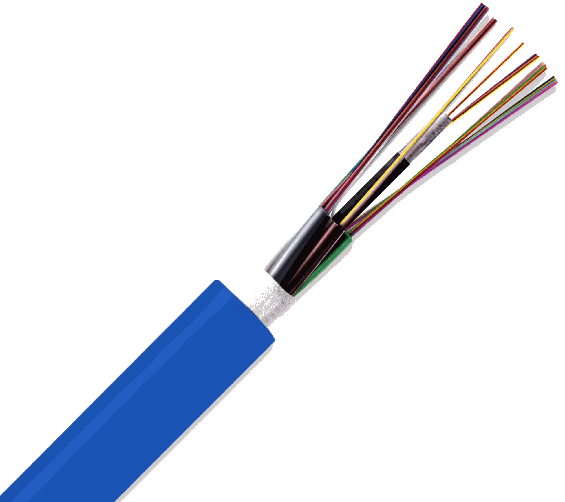 The cables are constructed around E-Glass yarns which are non-metallic with a strength member containing up to 24 colour coded 250μm loose buffered fibres, covered with a flame retardant, low smoke zero halogen, outer sheath which is CPR rated dependent on the requirements needed.